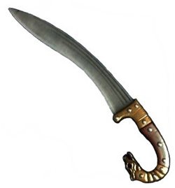 Sickle-shape swords like the falcate have developed all over the ancient world. The forward pitch of swords such as the falcate distributes the weight in such a way that it is capable of delivering a blow with the momentum of an axe, while still having the cutting edge of a sword
